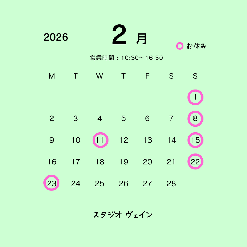 2月の定休日のお知らせ